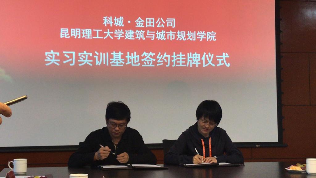 学院党政领导、城乡规划系领导与科城昆明分公司罗卿董事长、金田建筑规划设计有限公司及云南网星大数据科技股份有限公司相关领导参加了签约挂牌仪式。