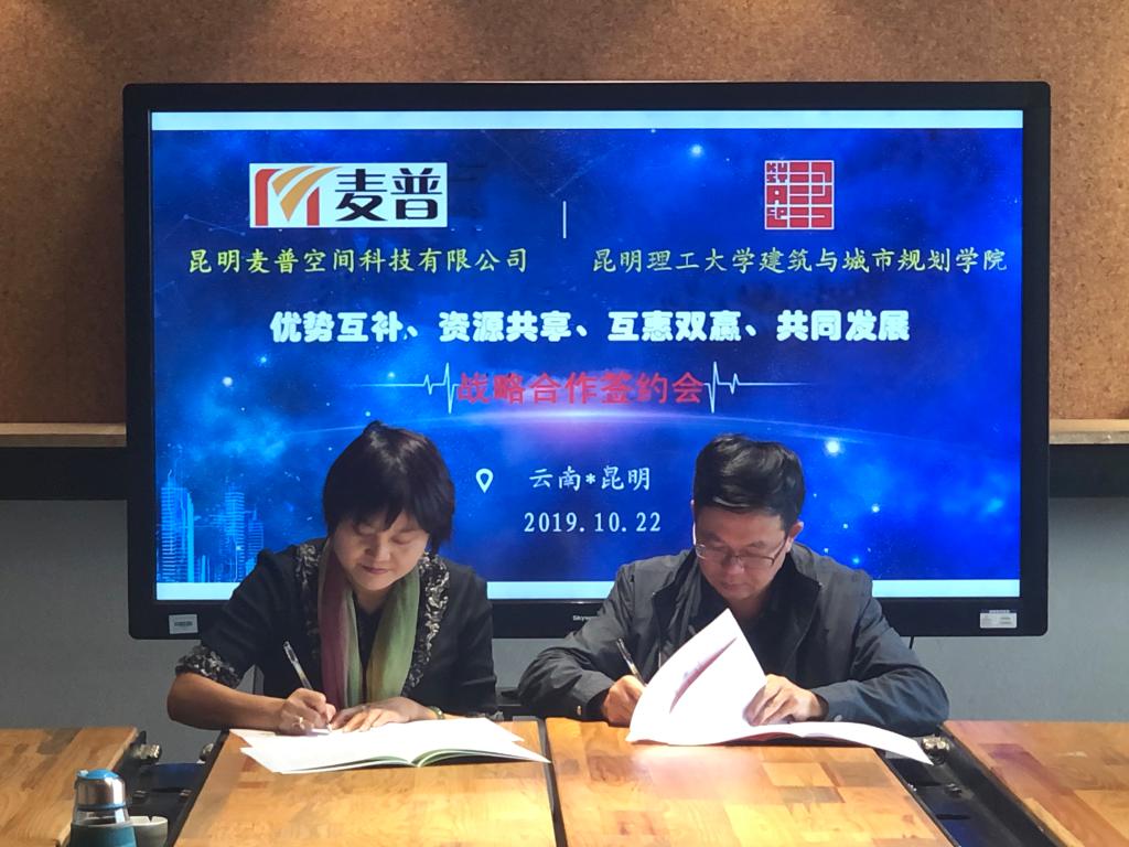 及昆明麦普空间科技有限公司(以下简称“麦普公司”)在国土空间规划编制方面的研究工作和项目设计水平,双方战略合作协议及校企合作协议签订仪式于10月22日在建筑楼举行。