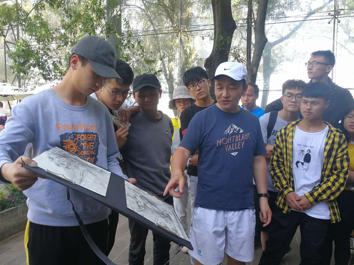 建筑学院18级园林专业《美术2》的素描风景写生课当中,和同学们一道交流并一同现场写生。