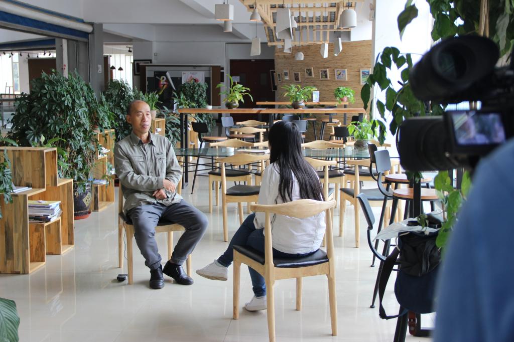 9月22日上午,云南电视台记者在建筑楼中庭“建筑客厅”对红桃视频