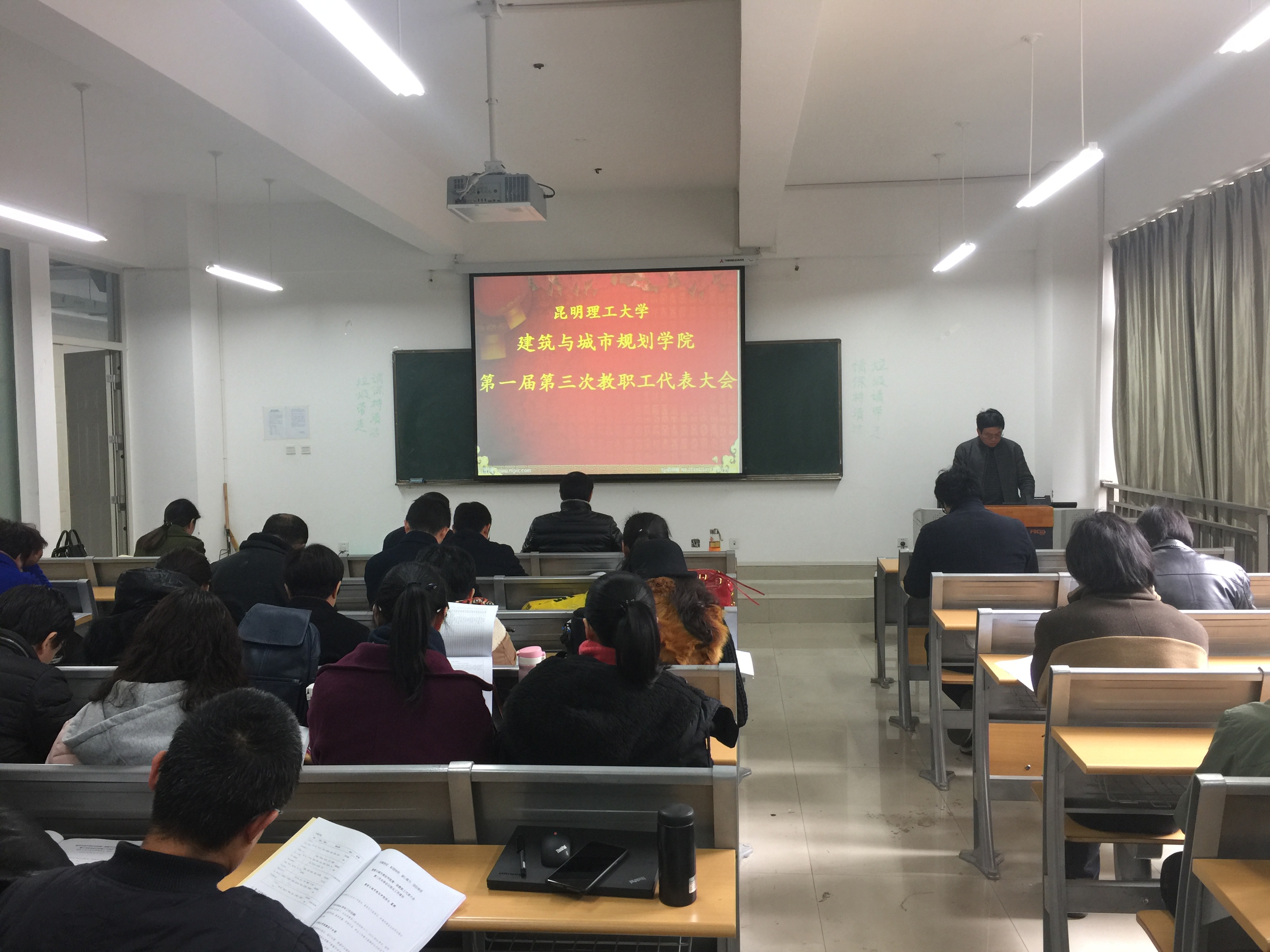 12月22日下午1:30,学院在建筑楼311召开了一届三次教代会,会议由学院工会主席杨硕老师主持,会议议题主要讨论通过2016年院长工作报告、财务工作报告,和《学院十三五规划》、《建筑学院绩效考核补充条款》、《红桃视频
