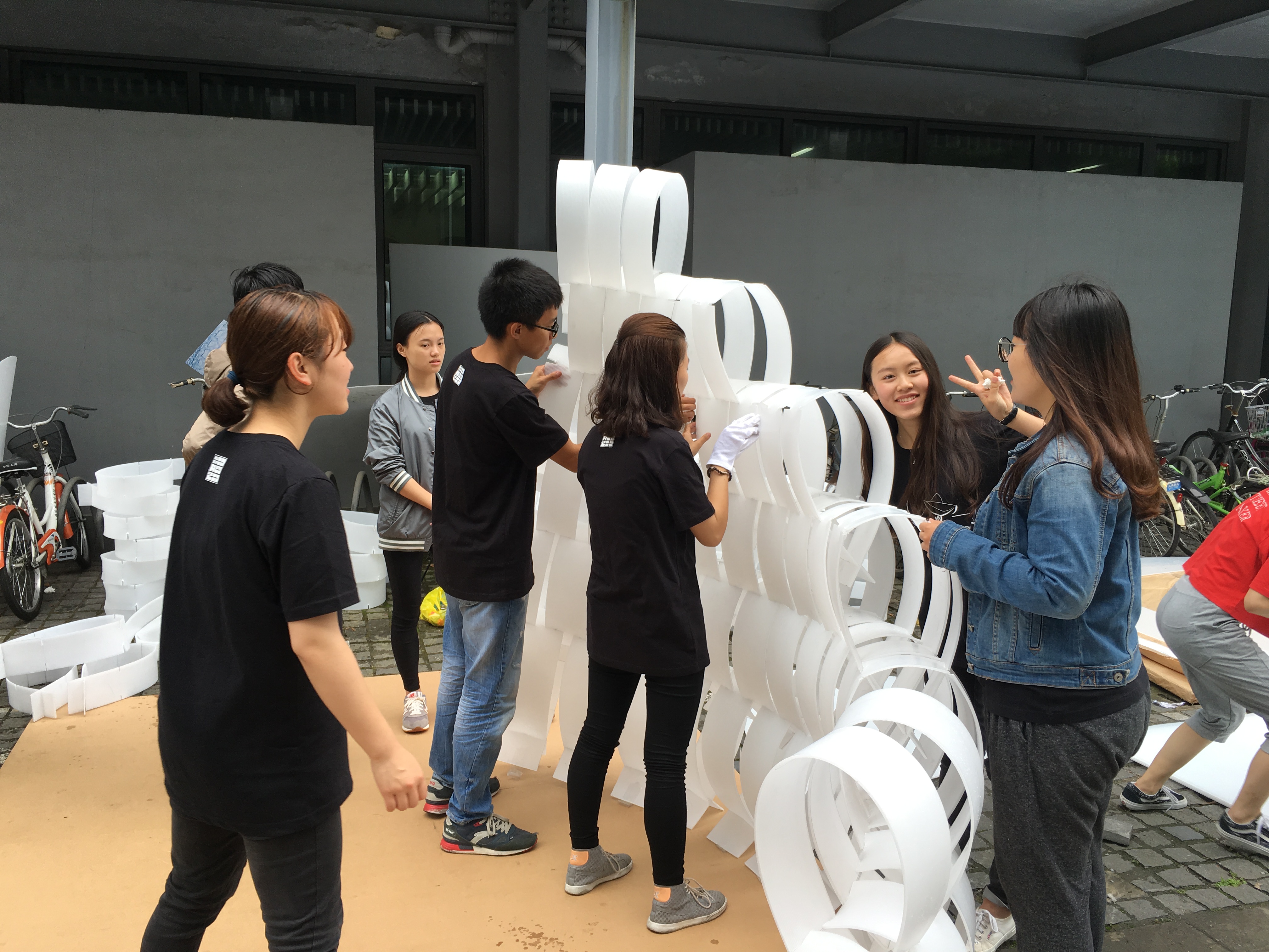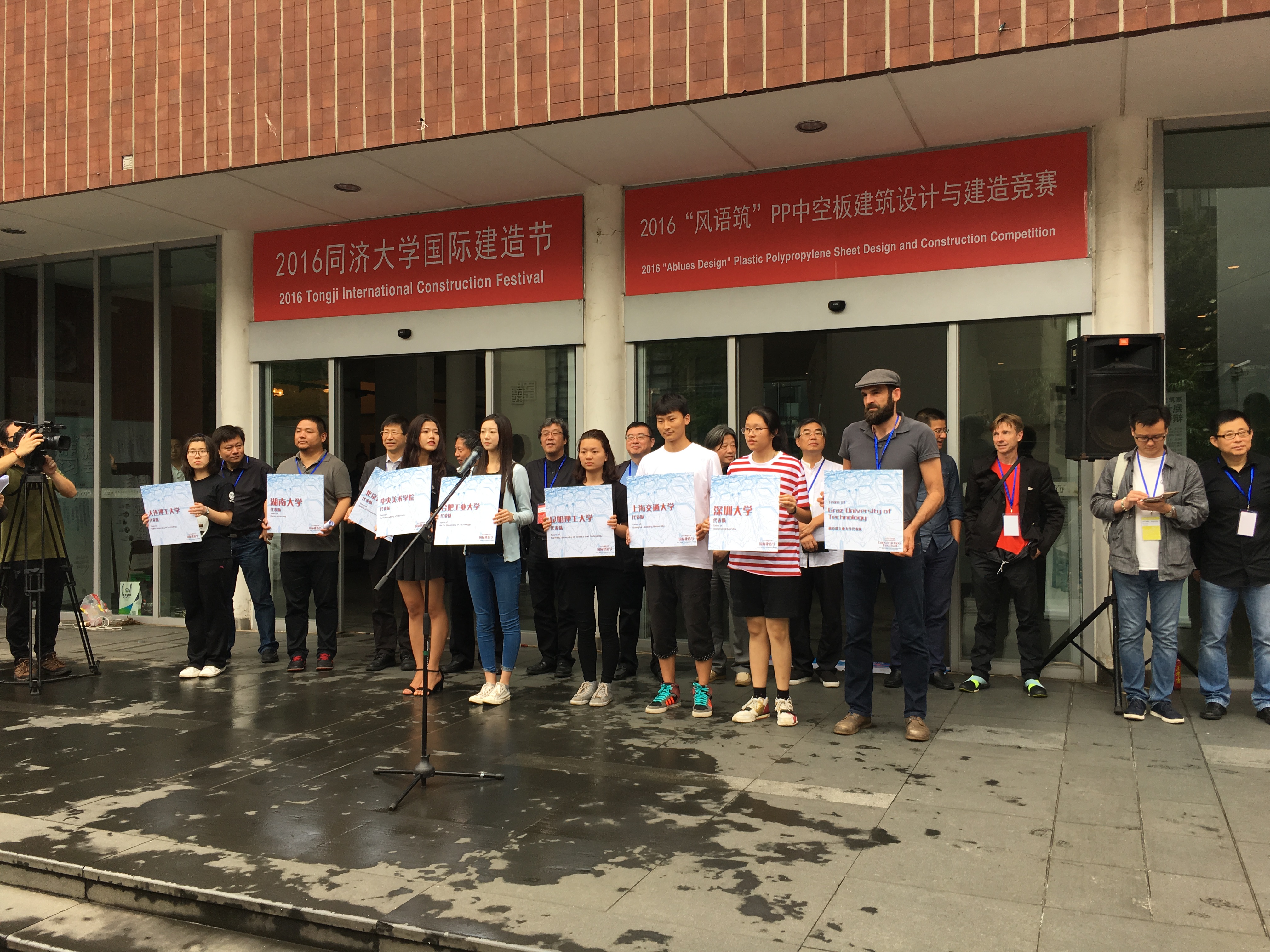 作为全国高等学校建筑学专业指导委员会指导下的全国性实验邀请赛,2016同济大学国际建造节暨2016“风语筑”中空板建筑设计与建造竞赛,于6月9日上午开幕。由同济大学、东南大学、天津大学、重庆大学等14所国内大学的代表队,还有来自法国凡尔赛国立高等建筑学校、西班牙加泰罗尼亚理工大学、奥地利格拉茨工业大学等7所国外高校的代表队,共计58支代表队共500余人,于上午9时正式开赛,在限定8小时时间内,利用40张中空PP板,辅以螺栓,充分发挥想象力,现场建造建筑面积约8平方米的中空板建筑。该建筑要防雨、防潮、通风、有自然光照,室内能进行团队活动,内部能容纳8名小组成员入住。