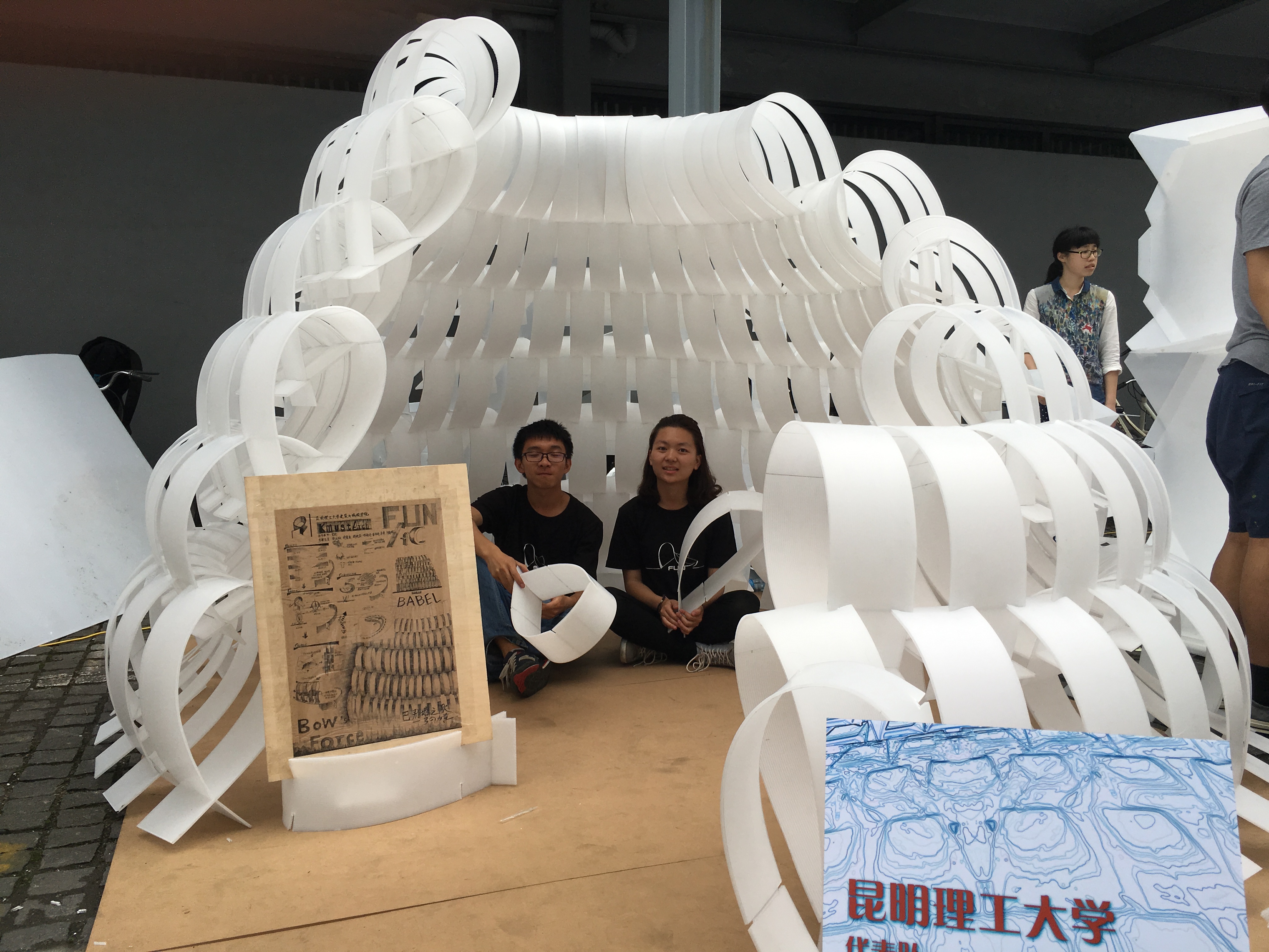 在本届建造节中,友好的邻里关系、现实的功能空间、适宜的建造方式和新颖的结构形态是参加竞赛的学子们必须面对的课题。创意、建造和团队精神是作品得以突出重围的三大关键要素。为了保证建造节的作品能够有更长的展览时间,与往年不同,本届比赛最大的特点是用中空PP板代替了往年使用的瓦楞纸板。在抗压和弯曲能力方面,中空PP板都强于瓦楞纸板,这一新材料为参加本次竞赛的学生设计富有创意的结构和空间提供了更多的可能。