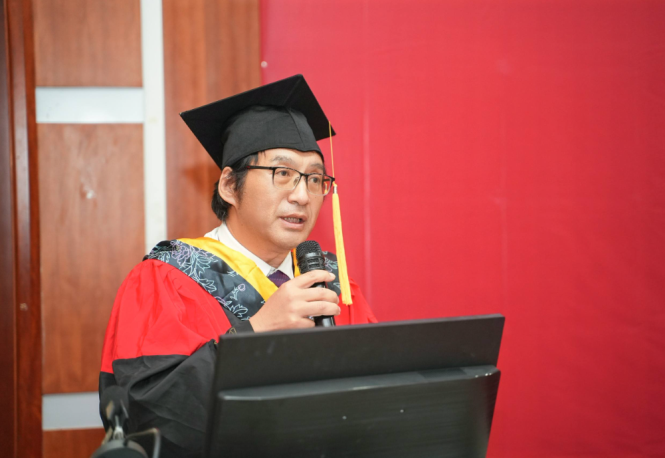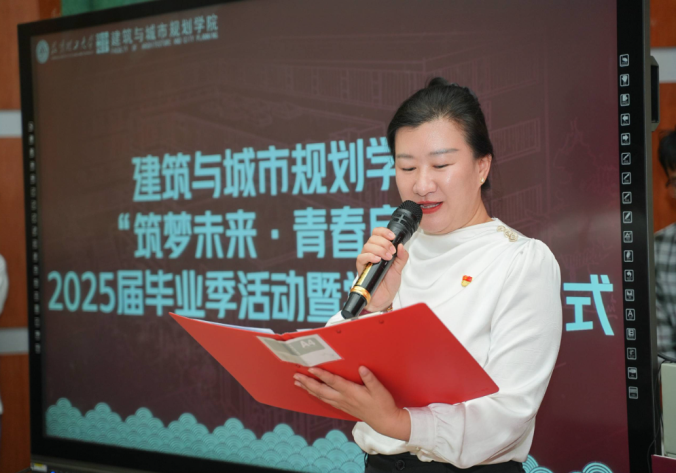 钟金栋书记满怀深情地回顾了同学们与学院共成长的点点滴滴,寄语毕业生在未来的人生道路上,坚持梦想、求真务实、不忘初心,在各自的岗位上发光发热。钟书记提到:“你们用青春绘制出最灿烂的图纸,也为学院发展书写下浓墨重彩的一笔。建筑学院的毕业生,你们是我们学院最生动的‘作品集’。