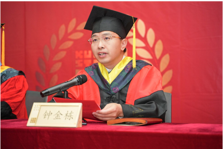 学位授予仪式上,学院学位委员会主任杨毅院长宣读了学位授予名单,然后请周峰越、钟金栋、杨毅、谭良斌、毛志睿、翟辉、杨大禹等10位老师上到主席台,为毕业生拨穗。这不仅是对毕业生成果的认可,更是对毕业生未来人生的美好祝愿。