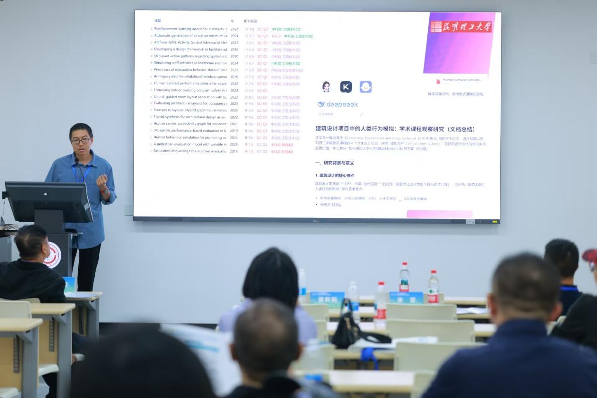 在AI辅助设计教学方面的系统化实践,包括参数化生成设计、环境性能模拟、遗产数字化保护等方向的教学案例。他指出,AI不仅是工具,更是设计思维的重构媒介,教学中应注重“逻辑建构—数据训练—结果批判”的全流程训练,培养学生对智能设计的批判性使用能力。