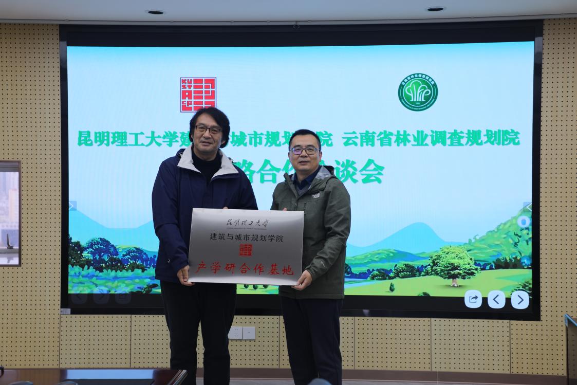 院长杨毅与云南省林业调查规划院副院长华朝朗分别代表双方单位,举行 “产学研合作基地” 授牌仪式。