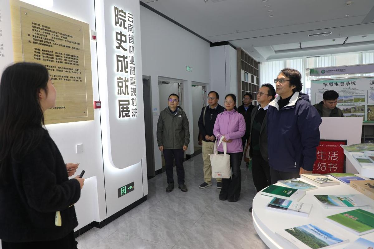 一行人在林规院领导的陪同下,参观了承载其七十余年发展历史的院史馆。通过详实的史料和生动的讲解,大家深刻感受到了林规院自1951年成立以来,几代林业调查规划工作者“替河山装成锦绣,把国土绘成丹青”的初心与坚守,对其在自然保护地建设、生物多样性保护、林草生态监测等领域取得的卓越成就有了更为直观和全面的认识。