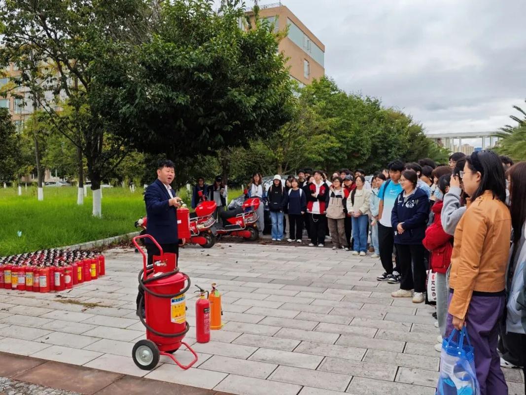 本次培训特别邀请云南久安职业技能培训学校的朱侨勋教官主讲。朱教官以三类典型校园火灾案例为切入点,生动剖析事故成因与深刻教训:宿舍违规使用 “热得快” 忘断电引燃床铺、实验室加热酒精操作不当引发火情、图书馆电路老化短路烧毁图书。这些案例让师生直观感受到火灾隐患的危害性,深刻认识到侥幸心理、管理疏漏和应急能力不足是导致事故扩大的关键因素。